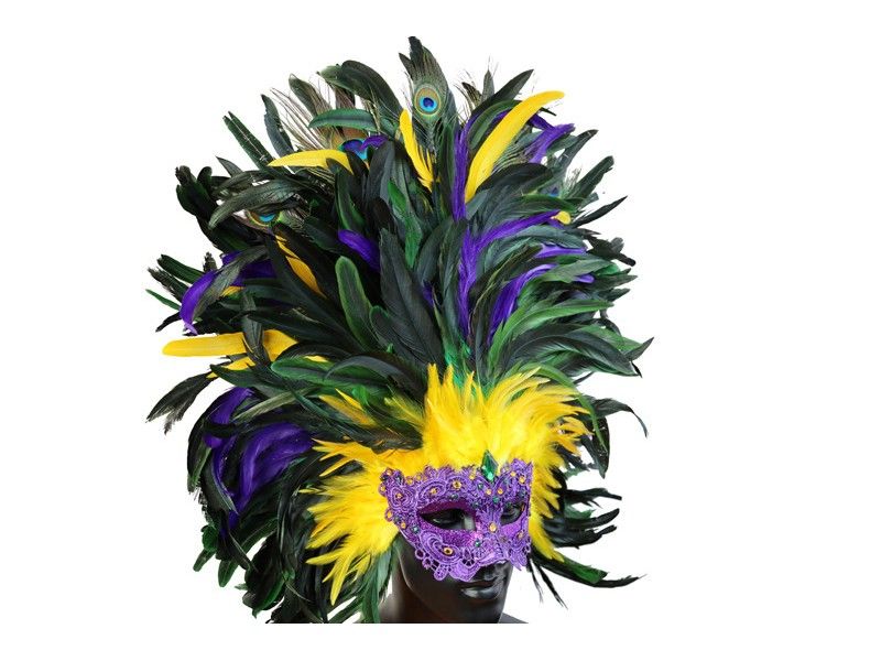 Mardi Gras Full Venetian Half Mask with Feathers